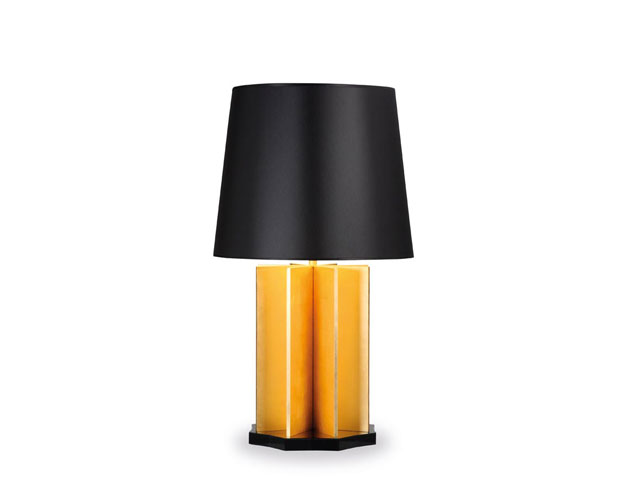 Lacquered aluminium and 23kt gold leaf - Fabric shade.